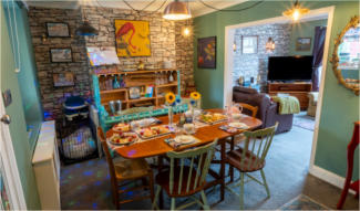 BRIGHT & UNIQUE PET FRIENDLY FAMILY FRIENDLY QUIRKY INTERIORS CLOSE TO DURHAM CITY FREE WIFI FULL SECURITY COVERAGE WHIMSICAL GARDEN HOT TUB OWNERS ON SITE TRANSPORT LINKS HARRY’S HOUSE DURHAM